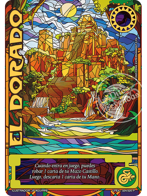 En cada Display podrás encontrar 24 sobres de la edición Leyendas PE 4.0, y adicionalmente una carta buy a box en arte vitral de 5 opciones al azar (Fruto Sagrado, El Dorado, Knarr, Los Cinco Anillos).